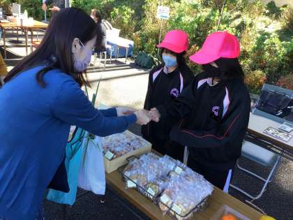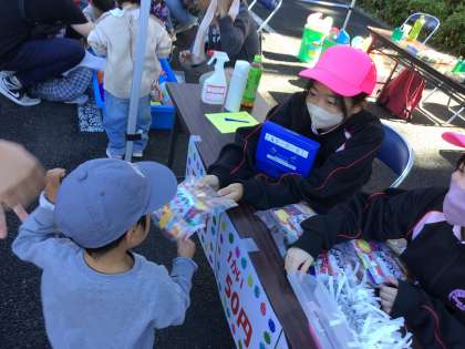 1年生が、地域の方々といっしょに、受付や出店の売り子など、さまざまなところで活躍する姿が見られました。