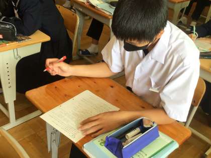下の写真は、2年生の英語の様子です。最上級の表現について学び、実際にはどのように使っていくのかプリントの問題で確認しているところです。
