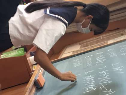 上の写真は、社会の授業です。ヨーロッパの地理について学んできたことを活かして問題を解き、仲間と確認し合っているところです。