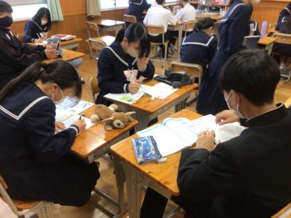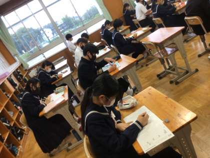 給食後の10分間、集中力を高めるBGMの中で全校生徒がテスト勉強に取り組んでいます。