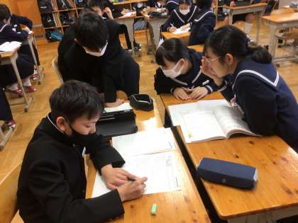 10分間を終えても教え合いを熱心に継続する3年生の姿も見られます。