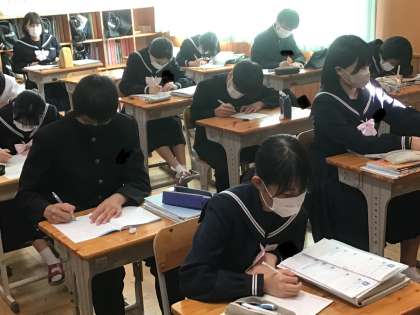教え合いをすることでお互いの理解をより深いものにする姿や単元テストに取り組む姿が見られます。