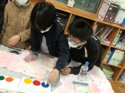 ふれあいフェスティバルで販売して好評を得た和紙染のポチ袋を、いっしょに作りました。