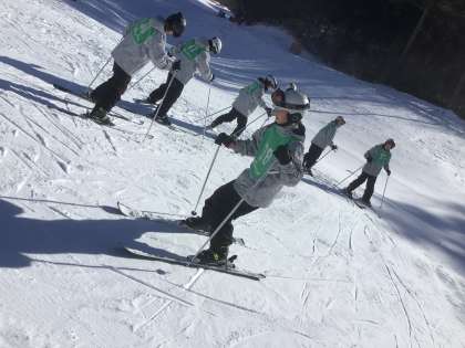 午前中にストックを使わずにコースを降りてきたチームも出てきました。