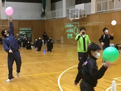 勇気を出して前に風船を打ち出したチームが試合を有利に進めていました。