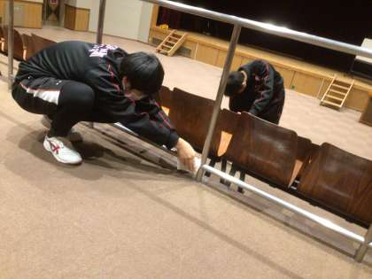 利用させていただいている施設の清掃から、今日の活動開始です。