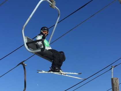 周りを見回す余裕が出ている生徒も。コースを自力で滑ってこられた自信の表れです。