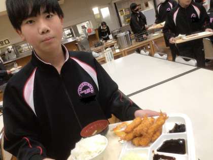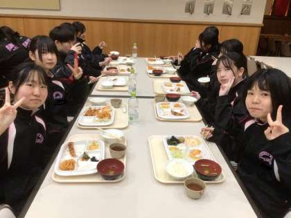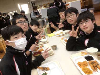スキー場からのバスでは疲れて眠っていた生徒たちですが、しっかりお腹を空かせてテーブルにつきました。もちろん、今日もお代わりをする生徒が多数見られます。
