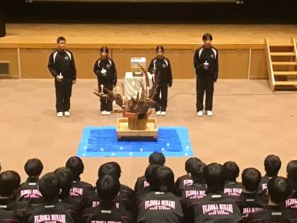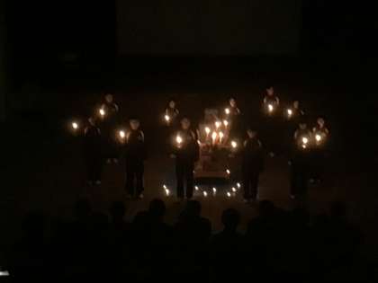 キャンドルに灯された誓いの火にそれぞれの思いを込め、学年全体で誓うセレモニーを行いました。