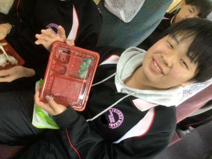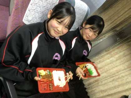 バス内で昼食をとりました。