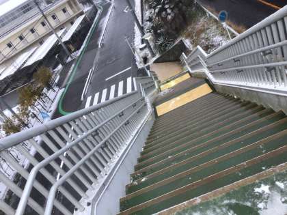 歩道橋や自転車門など、滑りやすくなる箇所には融雪剤を撒いてありますが、通行にはいつも以上に注意が必要となります。