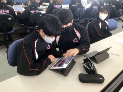 下の写真は、デジタルスタッフが学習用タブレットを活用して、動画を作成しているところです。