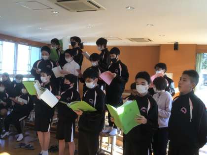 中央の写真は、合唱スタッフがパート別に音とりをしてきた成果を披露し、微調整をかけているところです。