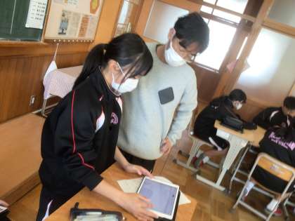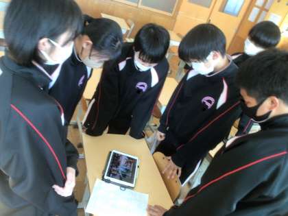 中央の写真は、パフォーマンススタッフです。現在の進捗状況を踏まえ、今後のスケジュールについて担当教諭に説明しているところです。