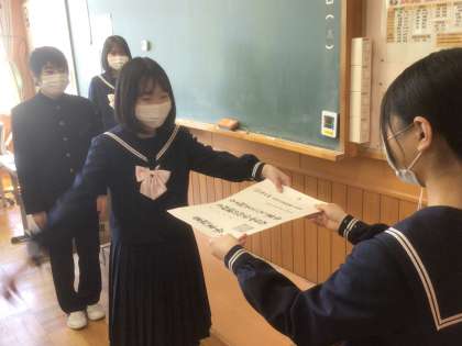 それぞれの学級で、卒業証書授与の動きの確認を行いました。