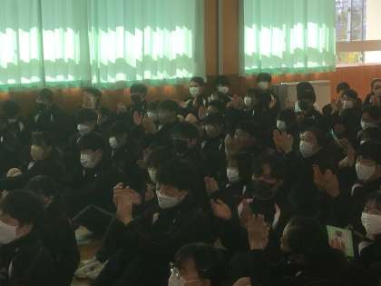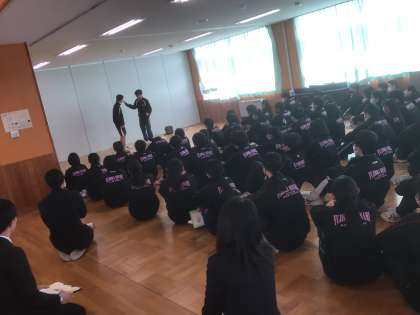 会場入りする前の3年生の様子です。学年集会を行っていました。