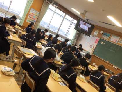 本日の給食中に、生徒会副会長立候補者の紹介が行われました。