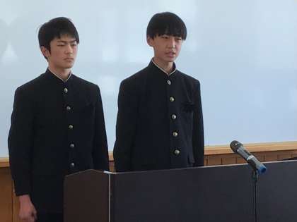 各教室で生徒たちは、責任者による推薦の言葉と立候補者が掲げる公約を聞き、投票する生徒を決めていきます。