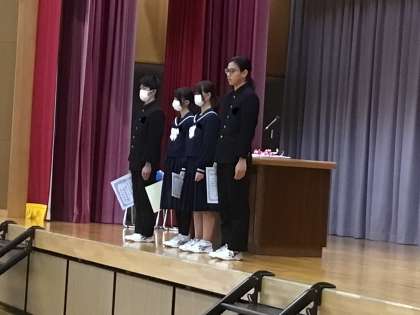 下の写真は、作文に関する分野で表彰された生徒たちです。