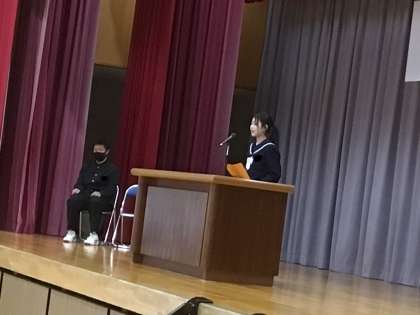 2年生はこれまでの自分たちの学年の良さと改善点を見つめ、次年度、学校のリーダー学年として全校を牽引していきたいという意気込みについて語りました。