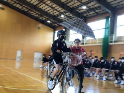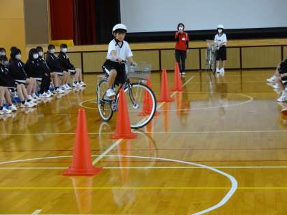 1年生を対象に、豊田市交通安全学習センターより講師をお招きして、自転車安全運転講習会を実施しました。