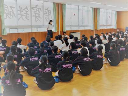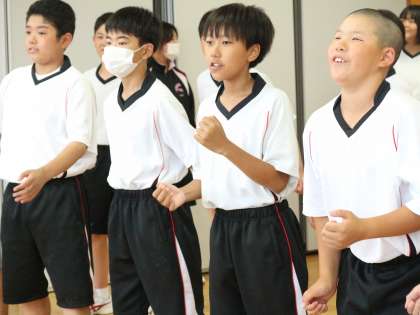 3年生が中心となって、1・2年生にダンスの振り付けを教えています。