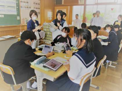 5時間目に、2年1組の理科の授業を全職員で参加しました。