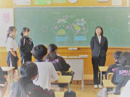 1年1組と2年4組へ2名の実習生が所属しています。実習生が朝の会に該当教室へ入ると、自然と拍手が起こり温かい雰囲気に包まれていました。
