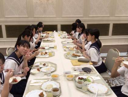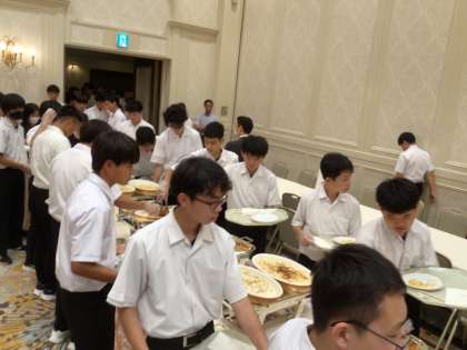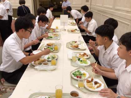 昼間たくさん動いた生徒たちは、お腹いっぱい食べています。
