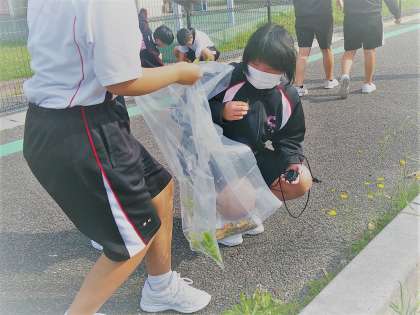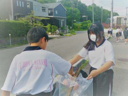 「フジナンピック」とは、1〜3年生が、体育祭で活動した団に分かれて学校周辺の清掃活動を行う取組です。団ごとに競い合って学校周辺をきれいにしています。