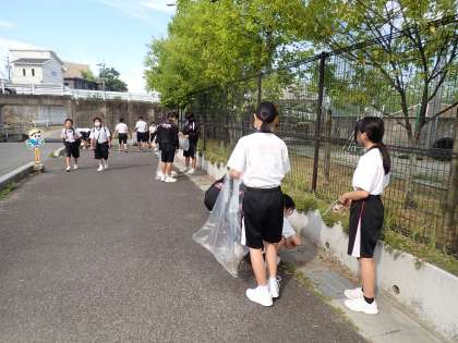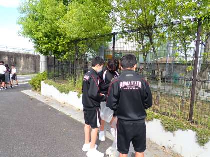 「フジナンピック」とは、1〜3年生が、体育祭で活動した団に分かれて学校周辺の清掃活動を行う取組です。団ごとに競い合って学校周辺をきれいにしています。