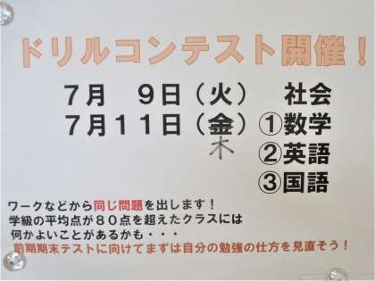 1年生は、基礎学力定着をつけることを目的とした「ドリコン(ドリルコンテスト)」が実施されていました。