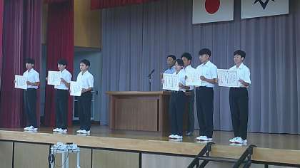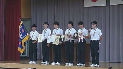 豊田市学校体育表彰として、弓道部とドッジボール大会に出場したメンバーが豊田市教育委員会より表彰されました。