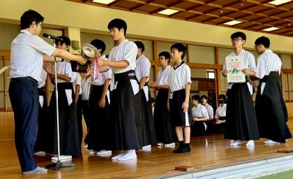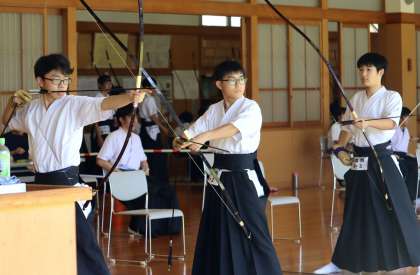 高温のため予選の記録で、1位タイ(2校)となり、団体優勝決定戦の1本目で3人とも的中させ、3対1で団体優勝しました。