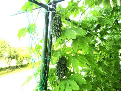 現在、ゴーヤの実が大きく成長して食べごろです。欲しい方は、是非職員室まで声をかけてください。