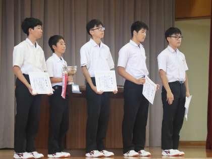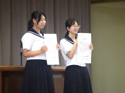 1時間目は、体育館で全校集会を行いました。弓道部、吹奏楽部の表彰。2年生の代表生徒によるスピーチなどがありました。