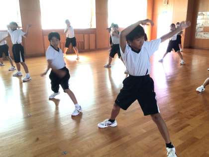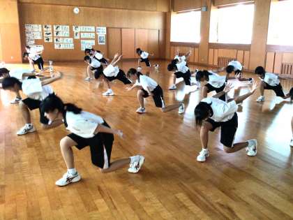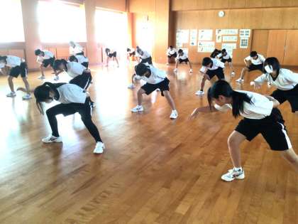 桜の舞とは、本校の開校から続く「ソーラン節」の藤岡南中版です。希望者を募って、桜の舞隊が結成され、昼放課や朝の会前に練習を行っています。