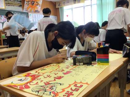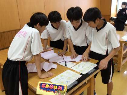 今週から午後からの授業は、ふれあいフェスティバルに向けての準備が中心となっています。1年生は、中学校で初めての行事ですが、クラスメイトと協力しながら準備を頑張っています。