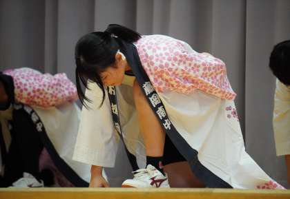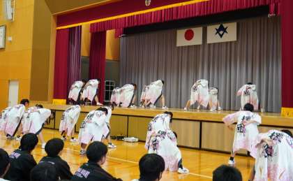 本日3時間目、ふれあいフェスティバルの校内オープニングである「起桜会(きおうさい)」が開催されました。