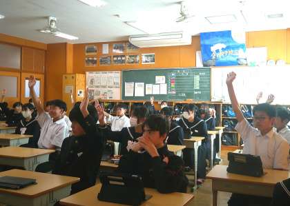 生徒会執行部や各委員会の委員長が、自分たちの活動方針を話し、全校生徒で質問や意見を交流する機会となりました。