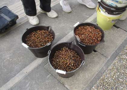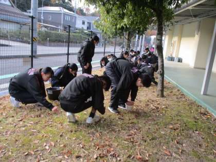 朝から多くの生徒が参加し、どんぐりを拾いました。