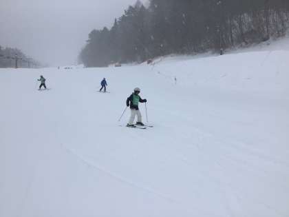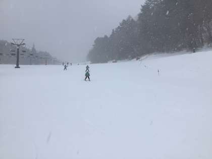 雪が降る中ですが、パウダースノーで雪質は最高です。