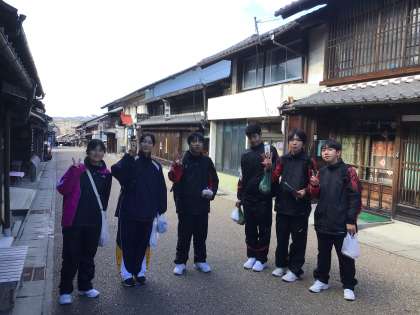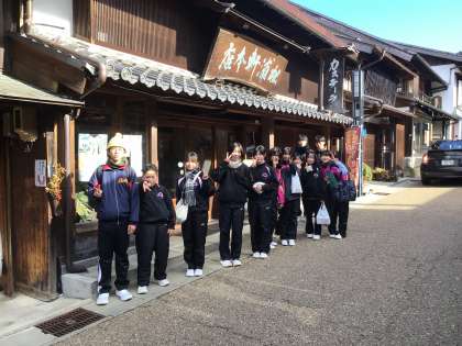 岩村城下町での散策活動を楽しんでいます。天気も良いです。