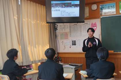 「自らの進路選択をどのようにして切り開いてきたのか」「一年前に戻れるならやっておきたかったこと」などを、3年生が講師としてプレゼンしました。