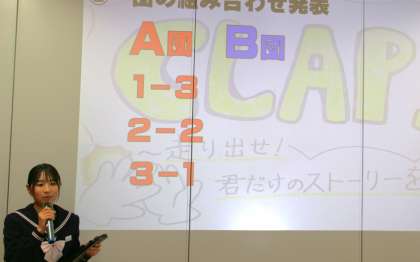 令和7年度前期生徒会執行部が全校生徒に向けて、今年度の活動目標や体育祭の内容についてを伝えるためにリモート放送を行いました。藤岡南中マスコットキャラクターの「さっくん」に扮して、明るく伝える姿がありました。