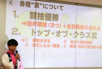 直訳すると「準備はいいかい?」という意味です。体育祭の準備や練習、本番まですべてを大切にしていきたいという実行委員の想いが込められています。体育祭に対する熱い思いを学級、団、学校全体で共有しながら、本番に向かっていきたいという想いも込められています。