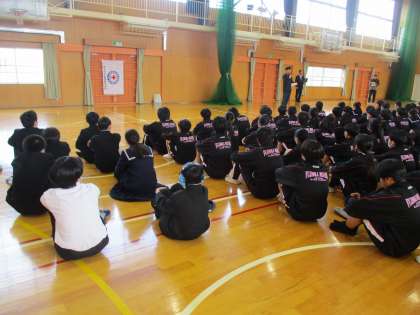 理科室から出火し、体育館に避難する想定で、実際に火災報知機を鳴らしての訓練でした。