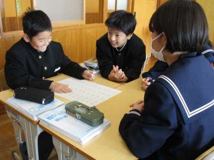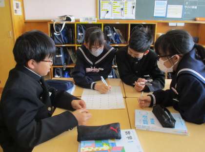 1年生の数学の授業では、グループで計算方法について話し合っていました。