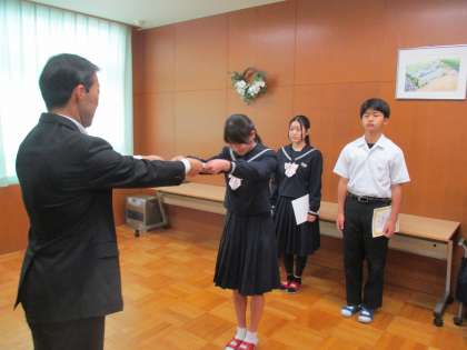 先日行われた委員会にて委員長に選ばれた生徒が校長先生より認証状を受け取りました。