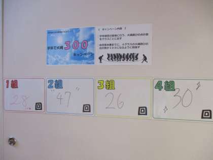 各学級で体育祭に向けて学級旗を制作していたり、長縄の跳んだ回数を廊下に掲示したりと体育祭に向けて動き出しています。